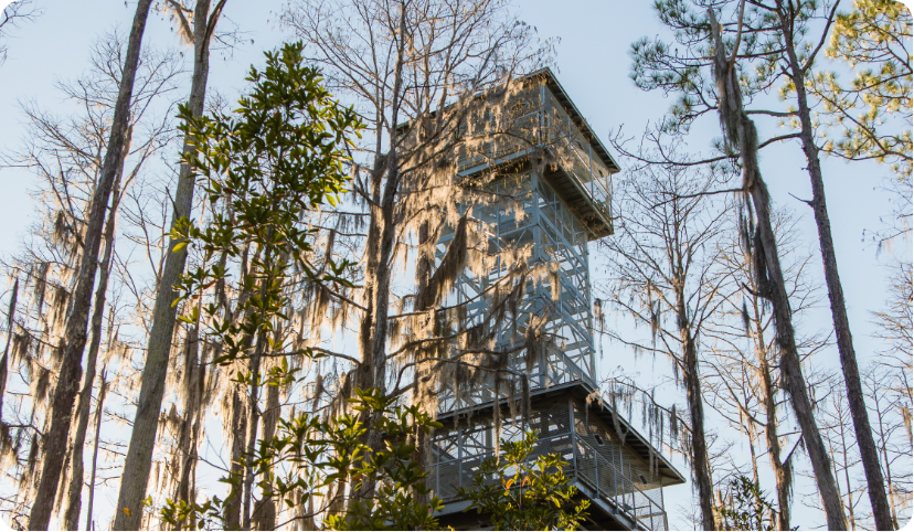 The wonderous world of the Okefenokee is a significant part of America’s heritage, a beautifully preserved segment of what was here when America began. The swamp is the headwaters for both the Suwanee and St. Marys rivers and was recently added to the National Wilderness System. The park is a convenient point of entry to the refuge and is a magnificent showcase for the natural wonderland. The park’s lily lined water trails reflect the overhanging beauty of the unique local flora and lead to all points in the vast wilderness of islands, lakes, jungles, forest, and prairies in the land of the trembling earth.